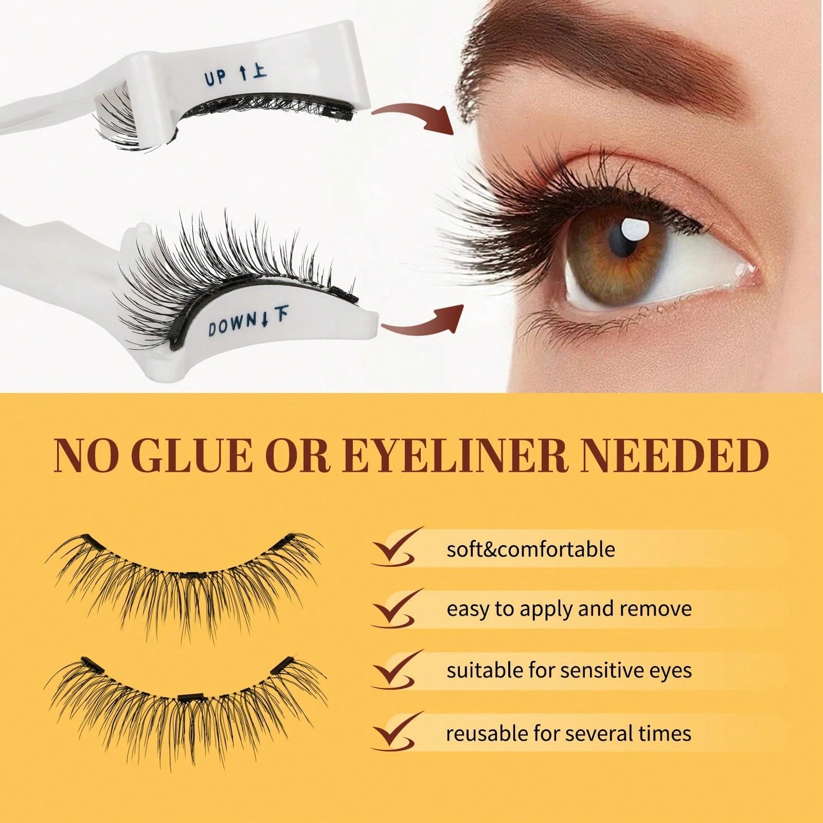 1 paire/set Kit de faux cils magnétiques bouclés CC avec pince à épiler professionnelle